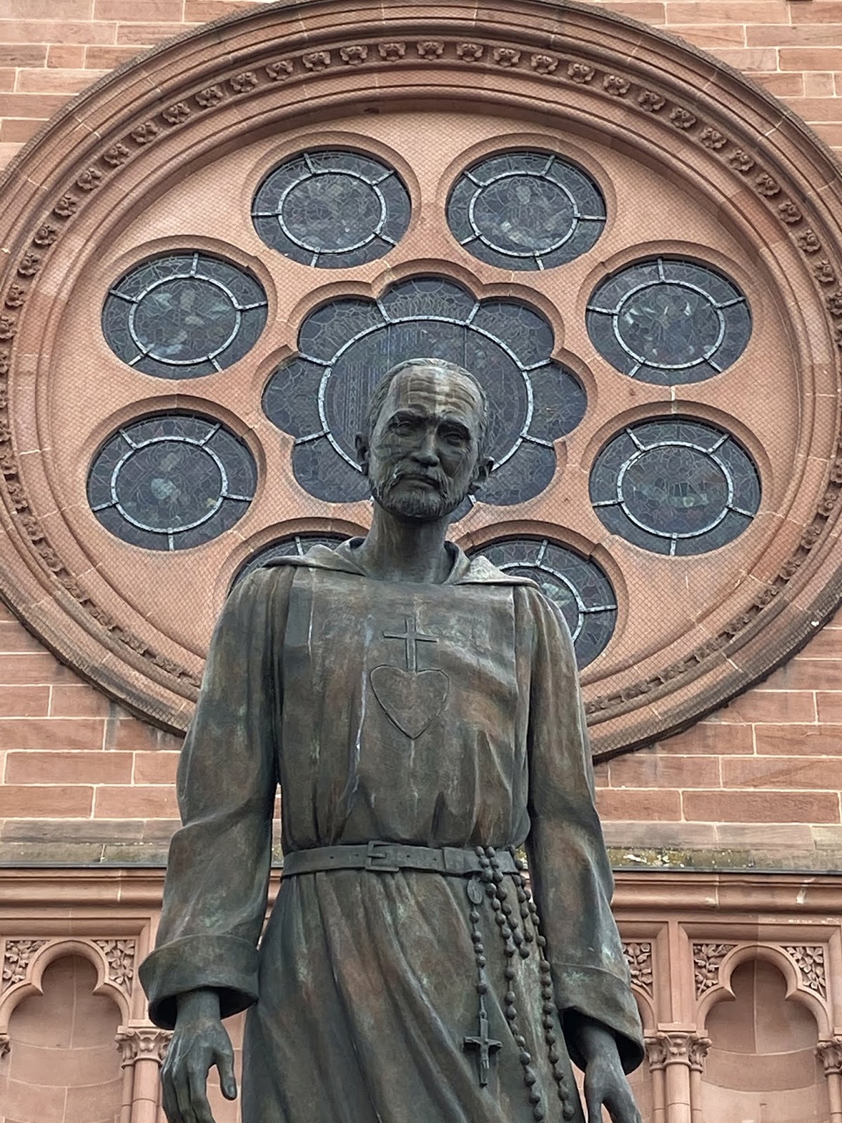 Charles de Foucauld voor kerk Saint-Pierre-le-Jeune.